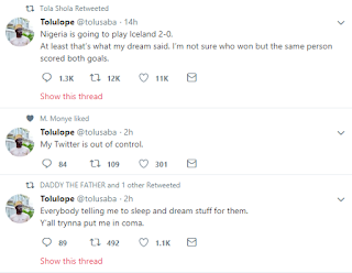 This Nigerian Man Just made himself a star Over Night, Chai, This morning around to 7am, the Guy Tolusaba Predicted Super Eagles Winning, and he even said the same person scored the 2 goals, I even retweeted it, Only for the Match to come and his predictions were totally right..